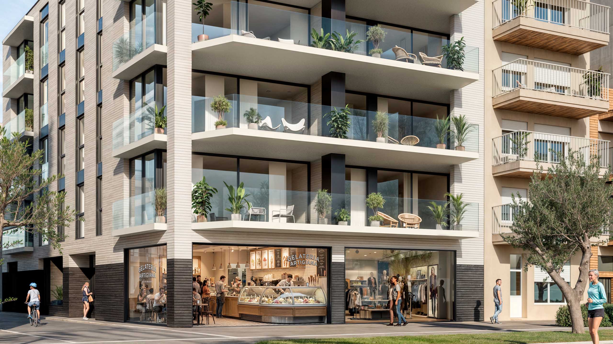 Un edificio familiar, orientado al sur y concebido sin multitud de vecinos, que define una forma de vivir más tranquila, íntima y conectada con el paisaje. Compuesto por 13 viviendas de 2 y 3 dormitorios y 2 baños, junto con 1 o 2 locales comerciales y parking subterráneo, configura un conjunto cuidado y coherente para ofrecer funcionalidad, confort y calidad de vida en un enclave privilegiado de la Costa Brava.