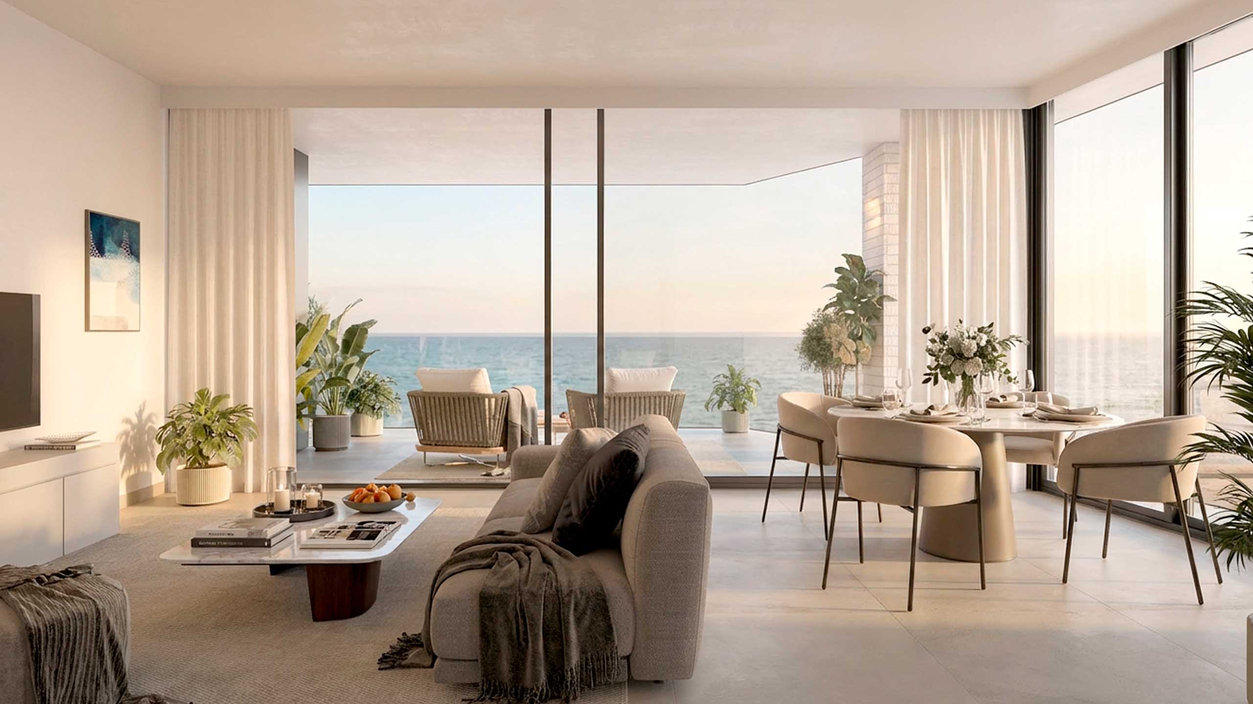 Cada vivienda se abre al exterior a través de amplias terrazas privadas, espacios diáfanos y funcionales bañados por la luz del Mediterráneo que se convierten en una extensión del salón con vistas directas al mar.